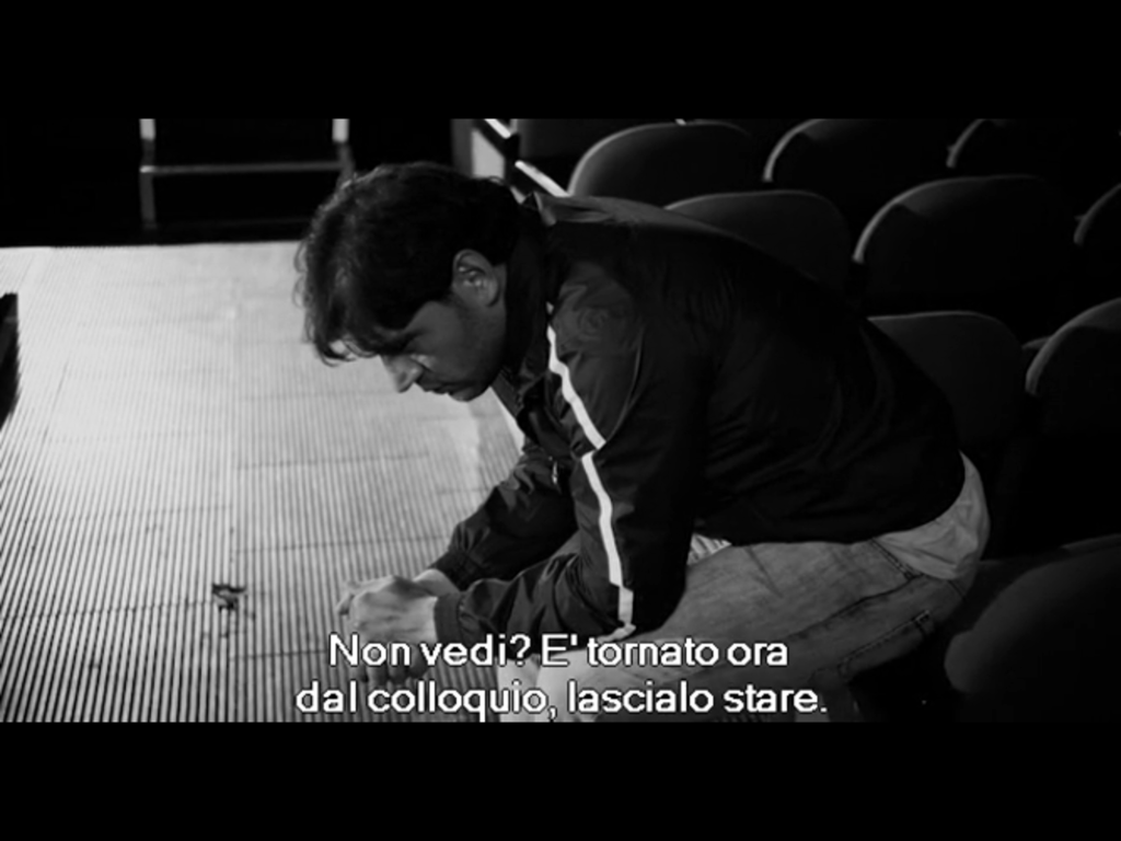 Le audizioni, le prove singole e generali, lo studio dei personaggi, tutto si svolge negli spazi e nei tempi che il carcere impone ai suoi ospiti. E così, immersi nelle tonalità di grigio che contraddistinguono il cinema in bianco e nero, i protagonisti provano le scene durante il passeggio, nell’ora d’aria, mentre rimettono in ordine le celle o il reparto.