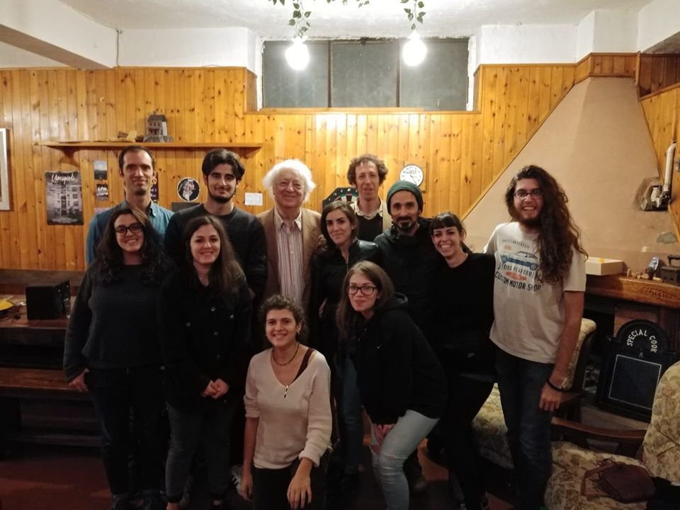 Troupe e cast di Una Psichedelia durante uuna pausa dal set