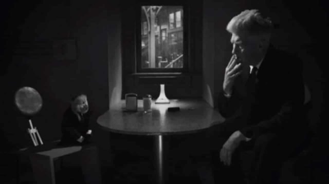 Dopo aver più volte incalzato Jack, sospettato principale dell’omicidio, il detective nomina Tootaboon, una gallina amata dalla scimmietta, vera e propria femme fatale della vicenda. A quel punto, assistiamo alla scena più bizzarra del corto: Jack intona una struggente canzone, dedicata alla sua amata. Per quanto possa sembrare estremamente buffo immaginare una scimmia che intona un inno d’amore, la sequenza ci appare malinconica, triste e a tratti disturbante. Nonostante non sappiamo nulla di Jack, del suo passato o più in generale non riusciamo nemmeno a comprendere il vero significato di quello che vediamo, rimaniamo profondamente toccati da questa scena. La vera forza dell’Arte di David Lynch risiede proprio nel saper destabilizzare il suo pubblico attraverso la mera esperienza visiva: rimaniamo così stregati da ciò che accade sullo schermo, spogliandoci di ogni preconcetto razionale.