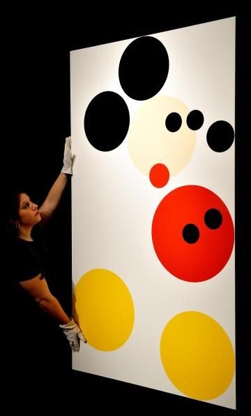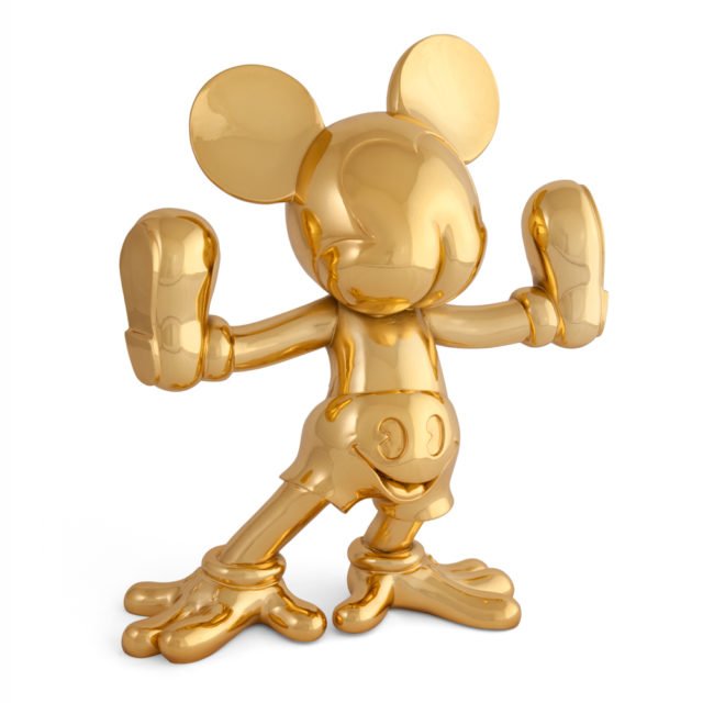 Damien Hirst, uno dei principali protagonisti della scena artistica contemporanea, lo ha scelto ben due volte. Nel primo caso Mickey (vernice su tela, 2012), devoluto in beneficenza, è riassunto in sola forma e colore, catturandone l’essenza, secondo il personale stile degli spot painting: è incredibile come con solo 12 pallini esso rimanga istantaneamente riconoscibile e dimostri quanto sia potente l’immaginario collettivo.
