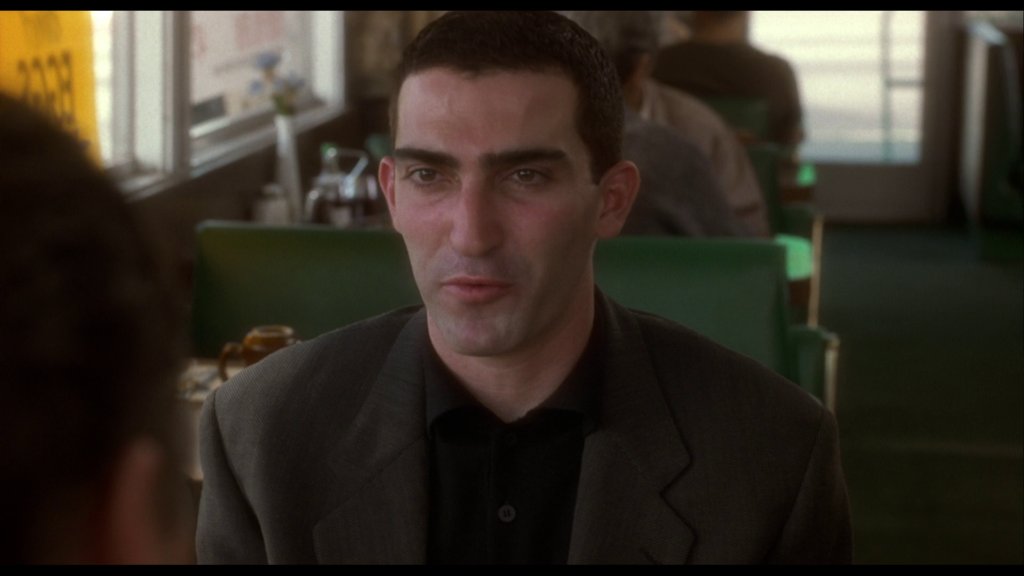 Il senso di angoscia, spaesamento e frammentazione vengono restituiti attraverso l’uso di una regia che utilizza elementi molto precisi. Possiamo scoprirli guardando all’iconica scena del diner, a quindici minuti circa dall’inizio della pellicola. Essa infatti contiene praticamente tutti gli elementi principali di cui possiamo servirci per sviscerare questo piano percettivo. Un uomo parla con il suo terapista di un sogno mostruoso che ha fatto (ecco l’unico riferimento diretto al sogno in tutto il film). Gli chiede di accompagnarlo dietro l’angolo di un vicolo dove, nella sua esperienza notturna, egli aveva visto una figura mostruosa. I due si avviano verso il luogo, finchè la figura mostruosa non appare per davvero, facendo stramazzare il sognatore al suolo per il terrore.
