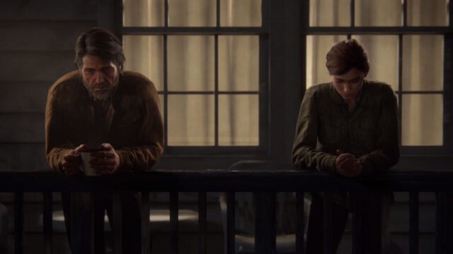 L’appoggiarsi a una balaustra preannuncia sempre un momento di intimo e silenzioso confronto per Ellie e Joel. I loro attimi più significativi nei due giochi, infatti, avvengono in spazi simili e sempre nelle fasi finali della narrazione. Una sorta di spazio-tempo del loro amore e della loro relazione.