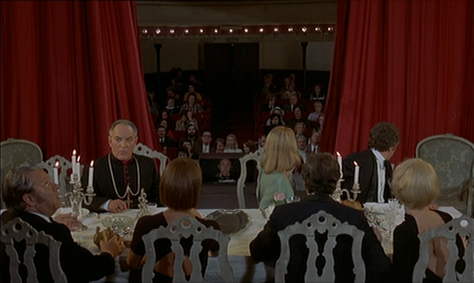 La scena più rappresentativa, tuttavia, è quella nella quale il sipario si apre e Buñuel arriva diretto al punto metacinematografico e metaesistenziale. Durante un pranzo a casa del colonnello, i protagonisti e gli altri commensali si ritrovano improvvisamente su un palcoscenico con tanto di pubblico e sipario spalancato.