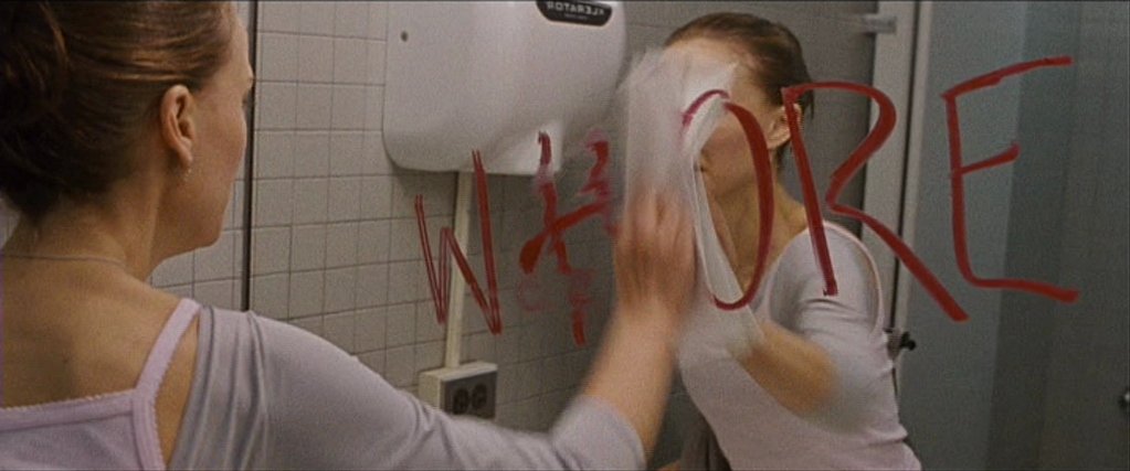 Come nella letteratura, il consultarsi allo specchio è un tema centrale (dal Dottor Jekyll e Mr Hyde alla fiaba di Biancaneve), così ne Il Cigno Nero diventa una costante che accompagna tutto il film. La ricerca della perfezione spinge narcisisticamente ad ammirarsi, ma Nina vi si immerge dentro per esplorare davvero ciò che si nasconde dietro l’immagine. Il costante sguardo rivolto a sè stessa, paradossalmente, la allontana dal mondo, facendole privilegiare sempre di più il proprio punto di vista come quadro di riferimento, assoggettando l’alterità alla propria personale percezione e distaccandosi sempre di più dalla concordanza collettiva. Tentando di divenire simultaneamente cigno nero e cigno bianco – oltre a divenire ciò è e ciò che l’alterità (raffigurata dalla madre e da Thomas) vuole che ella sia -, la soggettività di Nina diventa sempre più sovrastante, smarrendo il confine con l’oggettività percettiva e cadendo nell’abisso della psicosi.