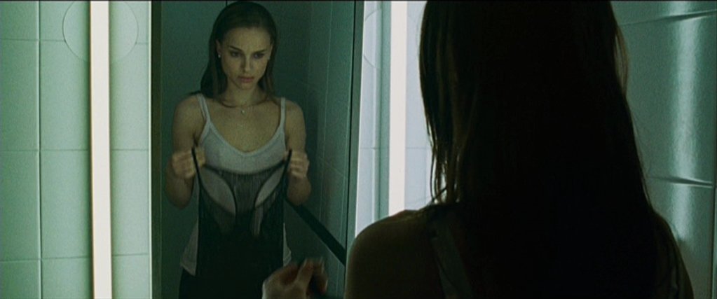 Già dalla notte precedente aveva sognato di interpretare il Cigno Bianco, in una versione più tenebrosa e inquietante, ma la prima vera premonizione di ciò che le accadrà avviene nel viaggio verso la scuola. Nella metropolitana intravede una figura che, se non fosse per gli abiti più scuri, sembrerebbe difatti essere proprio il suo doppio.