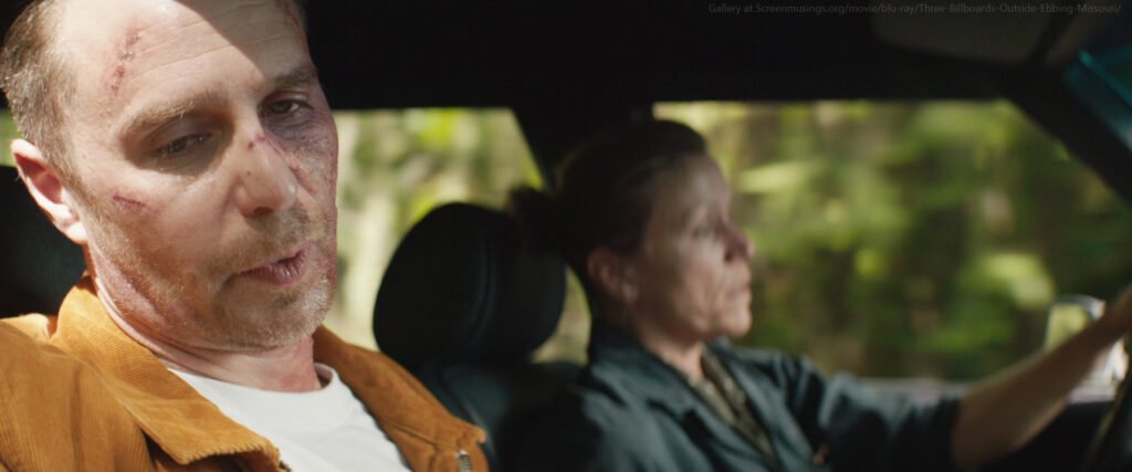 Purtroppo, il DNA non corrisponderà a quello trovato sul corpo di Angela. Ma, nelle storie portate sullo schermo da Martin McDonagh, non è questo che importa. Ciò che conta davvero è l’evoluzione dei personaggi. Dixon comunica a Mildred che il DNA non combacia ma, convinto che sia comunque uno stupratore, le propone di ucciderlo insieme. Durante il viaggio in auto, Mildred confessa a Dixon di essere stata lei a dar fuoco alla centrale, causandogli inavvertitamente le ustioni. Sorprendentemente, l’uomo risponde, con sarcasmo: «E chi altro avrebbe dovuto essere stato?». Nonostante Mildred gli abbia fatto del male, l’uomo ha fatto propria la filosofia dello sceriffo e di Red, rifiutandosi di cedere alla rabbia.