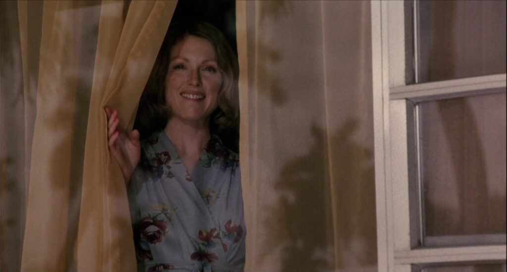 1951, Los Angeles: Laura Brown, madre di Richard, moglie casalinga in dolce attesa di Dan, il perfetto marito devoto della perfetta bambolina, che però è intrappolata in un’infelicità infarcita di tinte pastello e strazianti festoni echeggianti “happy birthday”, si sveglia, legge un libro – Mrs Dalloway – prepara due torte di compleanno, incontra un’amica, porta il figlio da una vicina perché ha delle commissioni da sbrigare e se ne va in un hotel, perché vuole farla finita – si sente affogare, un po’ come accadrà poi a Virginia, ma per davvero – e invece non ce la fa, ma prende una decisione importante, il suo destino le diventa chiaro – dopo la nascita della secondogenita lascerà la sua famiglia, perché «lì c’era la morte, e io ho scelto la vita», spiega – e poi torna a casa, a finire la sua giornata disperata, e anche su di lei cala la notte senza conforto.