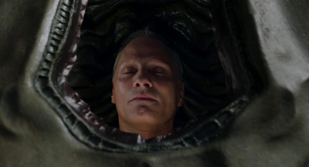 Uno dei temi fondamentali del film è la connessione tra il corpo umano e l’arte. Il protagonista, Saul Tenser (Viggo Mortensen), è un artista della performance che trasforma la produzione di organi nuovi e misteriosi nel suo corpo in veri e propri spettacoli chirurgici. Accanto a lui c’è Caprice (Léa Seydoux), ex chirurga e collaboratrice creativa, che realizza le operazioni come esibizioni artistiche. Cronenberg esplora il significato del corpo e dell’identità, mostrando Saul e Caprice che trasformano la chirurgia in body art estrema. Il corpo diventa una tela vivente, e la chirurgia è vista come la nuova forma di piacere. Cronenberg ha frequentemente meditato su come l’arte rappresenti un linguaggio complicato da delimitare, e in questo film propone che il dolore stesso potrebbe essere l’unico mezzo per una comprensione autentica dell’essere umano. Sessualità e autolesionismo si intrecciano sempre più.