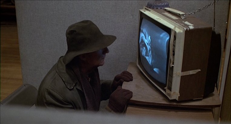 Uomo presso la Cathod Ray Mission, ovvero la Chiesa Catodica in cui si affollano i poveri, simboleggiante una contemporanea Chiesa del Video-Dio, in Videodrome