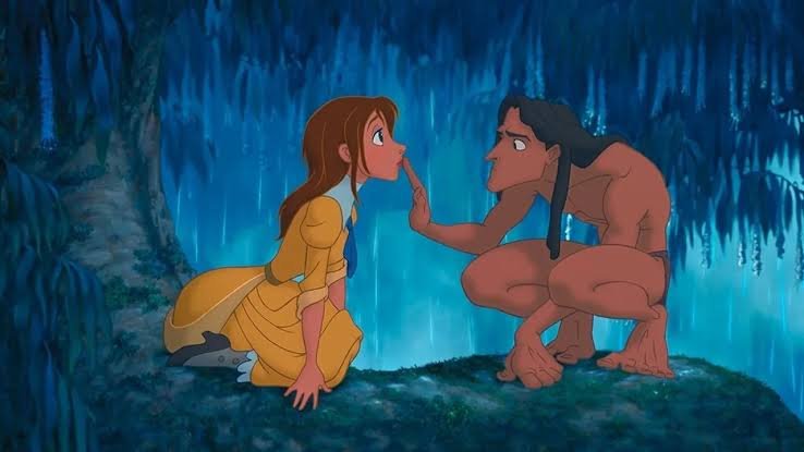 Corpi di Tarzan e Jane che si studiano, in Tarzan, Kevin Lima e Chris Buck, 1999