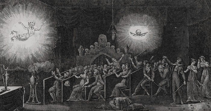 E infatti, le prime forme di ciò che più si avvicina al fantasma del nostro immaginario collettivo, sono proprio delle apparizioni di luce: le fantasmagorie. Quel teatro che attraverso una lanterna proiettava immagini spaventose, alterate e distorte dal movimento della fonte di luce, ricreando forme di demoni e fantasmi.