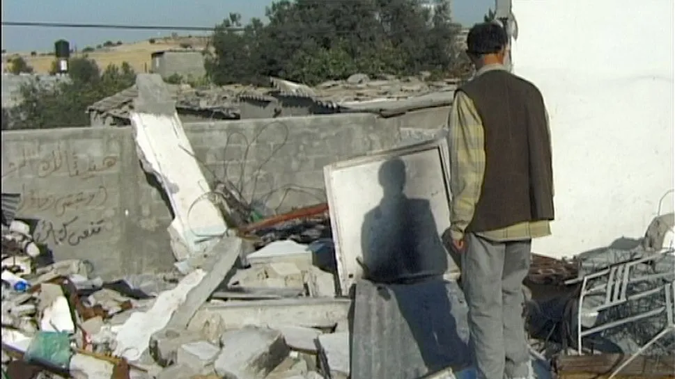 Il primo soggetto che Aljafari cerca di riprendere si nasconde. Chiede di spegnere la camera. Appare aggressivo. Vede lui e la sua mdp come una minaccia per la sua sicurezza: come un’arma pronta a sparargli in qualsiasi momento. Poi si rende conto dell’intenzione di Aljafari e allora accetta la ripresa, anzi lo invita a riprendere alcuni luoghi, alcune macerie, fino a condurlo alla propria casa. La mdp da arma diventa documento, risponde alla volontà di imprimere il ricordo di qualcosa che forse non esisterà più ma che in quel momento esiste, è vivo. Viene colta dal soggetto l’intenzione di Aljafari, così quell’atto così politico di accendere una videocamera diventa un atto di resistenza.