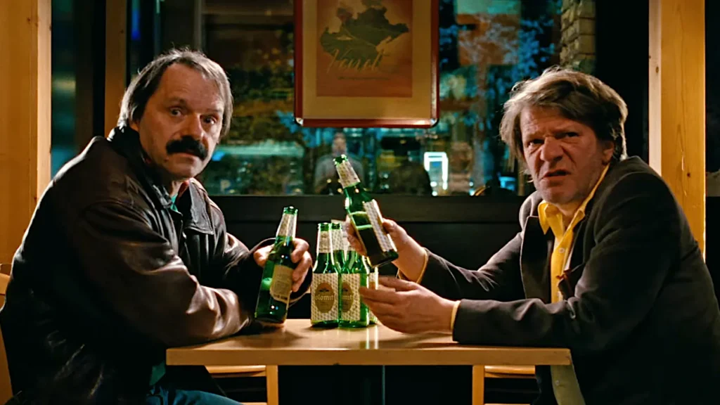Quella vecchia Jaguar S-Type con cui si muovono sbilenchi Doriano e Carlobianchi ricorda la Fiat 600 di Nicola Palumbo in C’eravamo Tanto Amati di Ettore Scola, il premio di consolazione piccolo borghese per una vita che non ha rispettato le sue promesse.