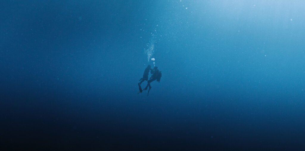 Con il direttore della fotografia Fabrizio La Palombara abbiamo costruito un linguaggio essenziale. La regola era una sola: less is more. Andare all’osso, togliere il superfluo, lasciare che fossero i corpi, la luce e il silenzio a parlare. In entrambi i casi, sulla terra e sott’acqua, abbiamo lavorato il più possibile con la luce naturale, cercando l’essenziale. Sott’acqua Simone Trecca e la sua crew ci hanno guidato con passione e competenza, accompagnandoci in un territorio delicato e complesso, dove ogni gesto deve essere preciso e ogni errore si paga caro. È stato un lavoro collettivo, vero, fatto di fiducia reciproca e di una visione condivisa.